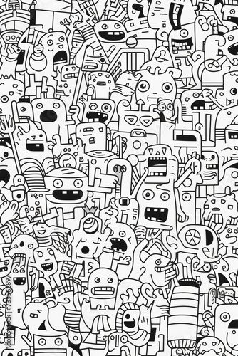 Illustration of coloring book doodle crowd cute alien monster Created with Generative AI technology.
