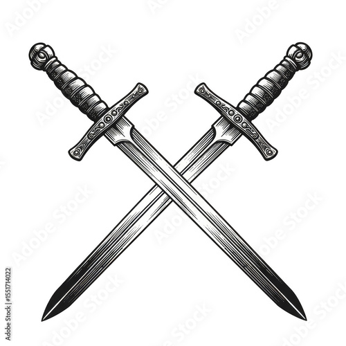Illustration of Crossed Swords Medieval Steel Weapons Isolated Background