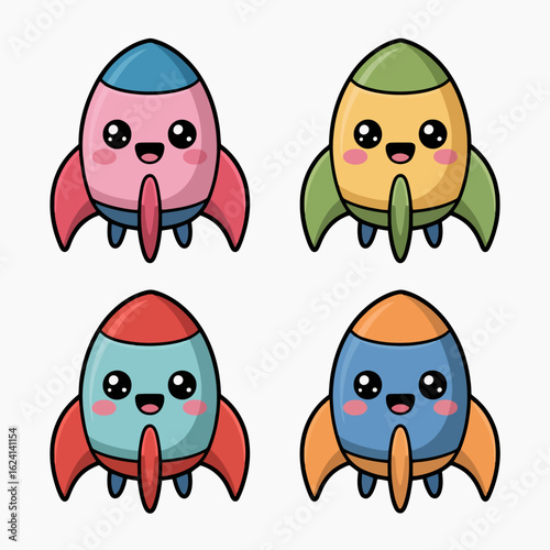 Illustration of cute cartoon rocket isolated on white background, a vector illustration of a colorful spaceship for kids, children, and babies, perfect for stickers, drawings, and graphic