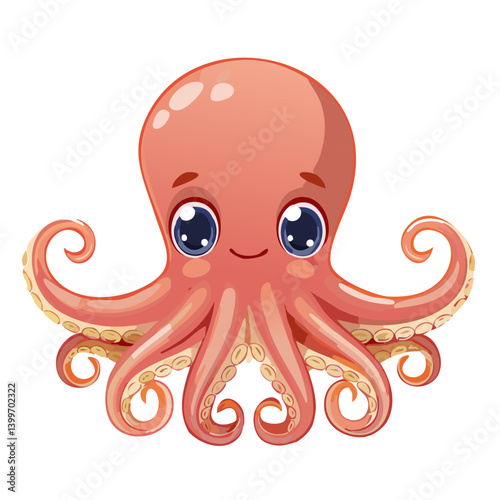 Illustration of Cute Smiling Octopus with Big Eyes and Curly Tentacles