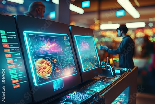 illustration of cyber interface in supermarket , machine, idea for futuristic lifestyle