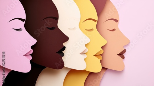 Illustration of different skin tones of ethnically diverse women, International Women's Day graphic
