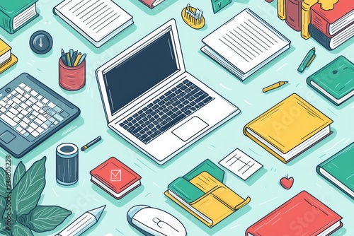 Illustration of educational learning tools set on table created with Generative AI