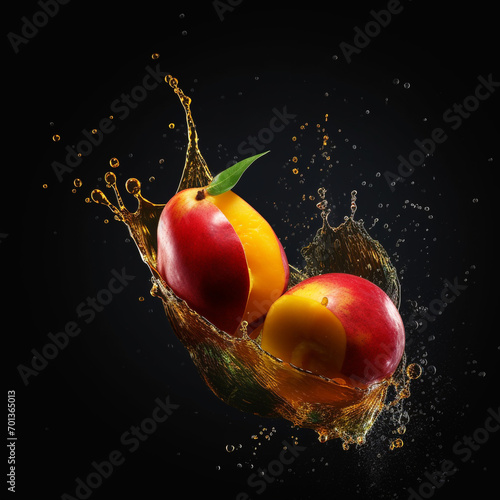 Illustration of fresh yellow mango on an unusual background, natural colors, and realistic shades.