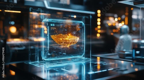 Illustration of futuristic holographic application for food delivery. Ai generated image