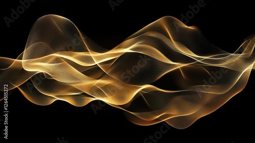 Illustration of golden wave of delicate particle lines with luminous effects on black background