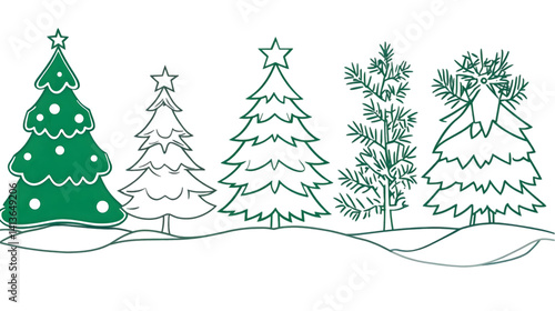 Illustration Of Green And White Christmas Trees In A Row On Transparent Background