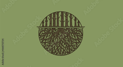 Illustration of Interconnected Roots and Trees Environmental Sustainability.