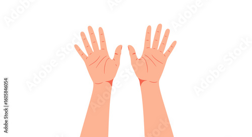 Illustration of Pair of Raised Hands with Open Palms Exhibiting Gesture of Surrender or Acceptance for Design Projects