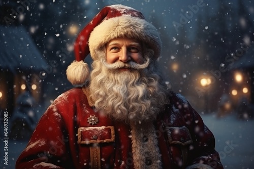 Illustration of Santa Claus enjoying the snowy winter together created with Generative AI technology