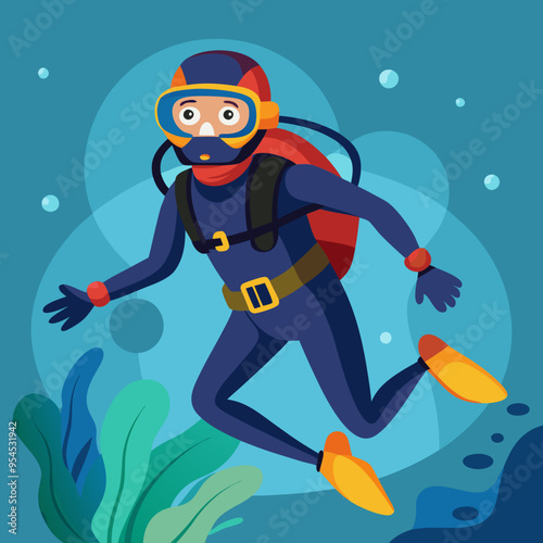 illustration of scuba diver in the sea