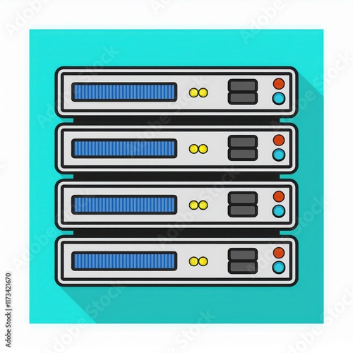 Illustration of server racks with colorful design and vivid detail.