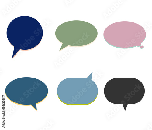 Illustration of six speech bubbles in vibrant colors on a transparent background, ideal for creative projects or communication designs.