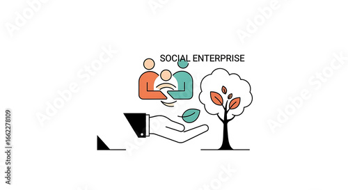 Illustration of social enterprise concept with people hand tree and leaf on a white background ai generated