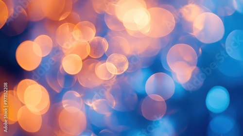 Illustration of soft abstract bokeh lights in blue and orange color scheme, blur background. Ai generated image