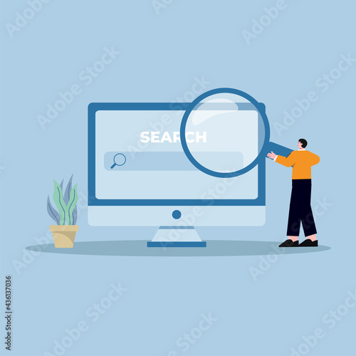 illustration of someone looking for a website address. trending search engine.