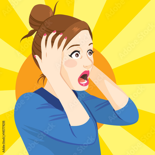 Illustration of surprised woman with hands on head in shock expression