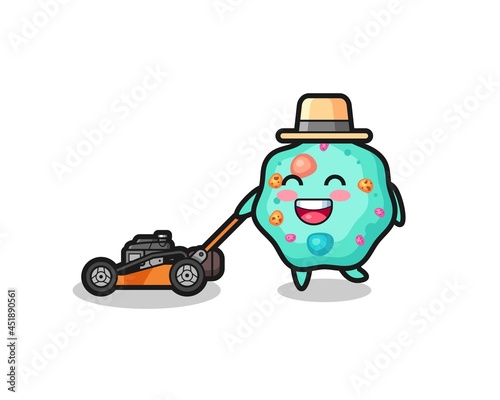 illustration of the amoeba character using lawn mower