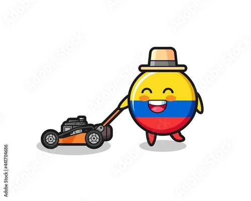 illustration of the colombia flag badge character using lawn mower