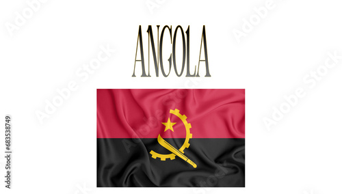 Illustration of the flag of Angola. with 3d inscription of the name of Angola. For use in educational proposals or video illustrations. Transparent background.