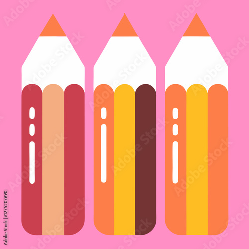 Illustration of three large colored pencils on a pink background for office work