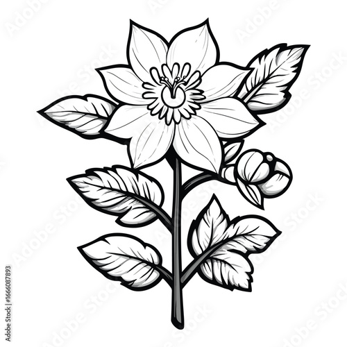 Illustration of three lilies with detailed petals and leaves in a black and white line drawing style