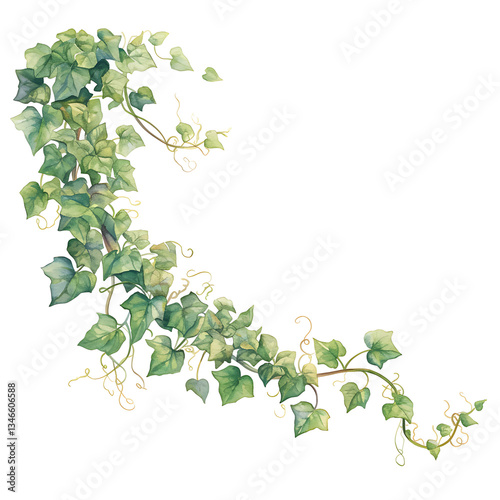 .Illustration of trees, leaves, grass and various botanical elements on a white background.