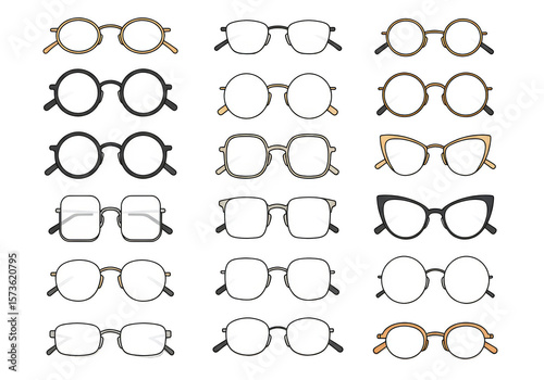 Illustration of Various Fashionable Eyeglasses Glasses with Transparent Background
