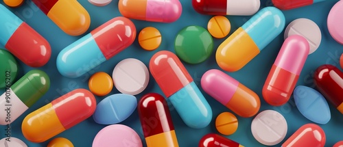 Illustration of various medications used for persistent ache relief, detailed and informative, Medical, Digital Art, Bright colors, Educational and clear 8K , high-resolution, ultra HD,up32K HD