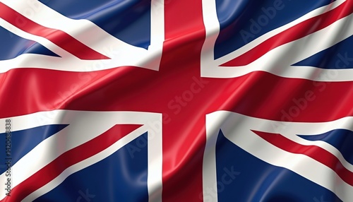 Illustration of waving British flag. National flag of the United Kingdom, the Union Jack. Symbol of Great Britain, England, London, UK. Patriotism, national pride, history.