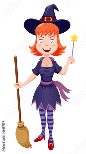 illustration of witch cartoon with broom.Vector