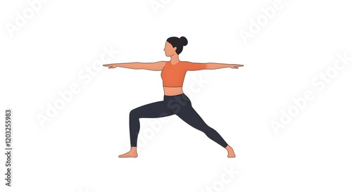 Illustration of Woman Practicing Warrior II Pose in Yoga