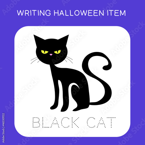 Illustration of worksheet writing practice Halloween item. Educational printable worksheet. Exercises lettering game for kids. Vector illustration.