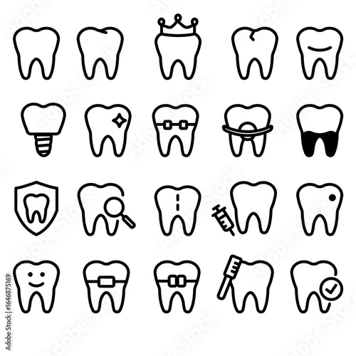 Illustration showing a set of tooth icons for a dentist office on a white background