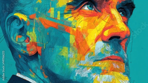 illustration, technology, glow, portrait of confident mature business man,stock image