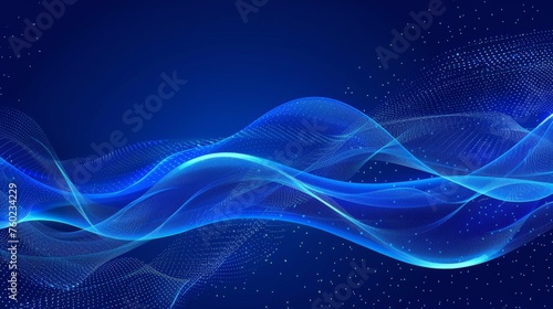Illustration vector abstract wave motion pattern and dynamic mesh line on dark blue background. Modern futuristic design for background or wallpaper