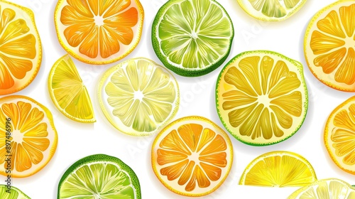 Illustration. Vector background with lemon, orange and lime slices isolated on white