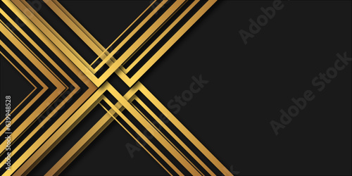Illustration vector graphic of Abstract background luxury black overlap layers modern. Abstract Premium Black Geometric Overlap Layers with Stripe Golden Line Luxury Style on Dark Background.
