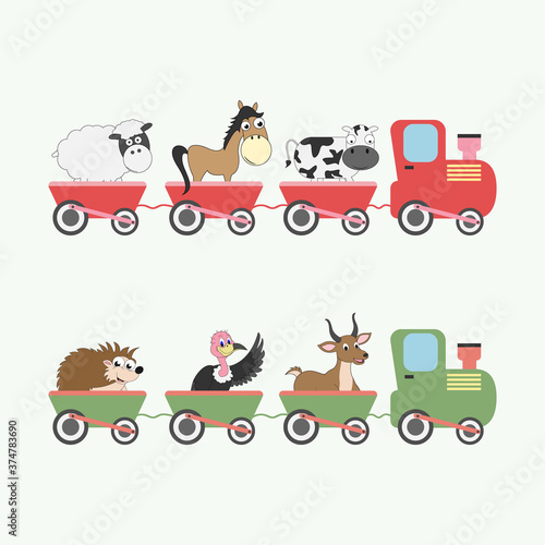 illustration vector graphic of cute animal character cartoon on the train isolated, perfect for cover, book, birthday card, gift card, wrap paper, sticker, t-shirt, memo, decoration
