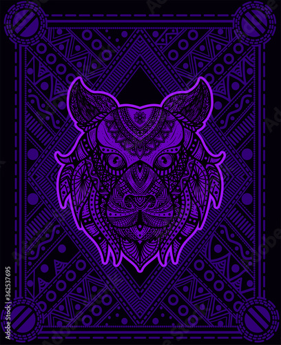 Illustration vector tiger head mandala pattern style with sacred geometry on black background.