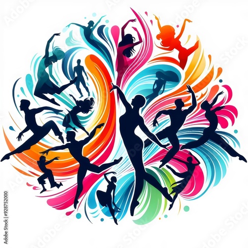 illustration with dancing people on white background