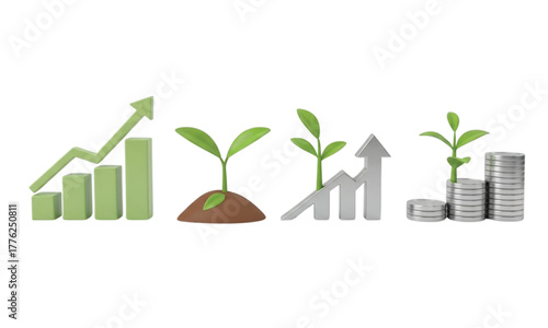 Illustrations depicting financial growth, investment, and the concept of money growing over time.