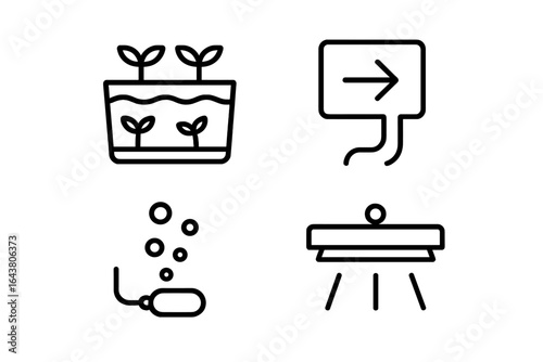 Illustrations depicting hydroponic gardening techniques and underwater growth methods