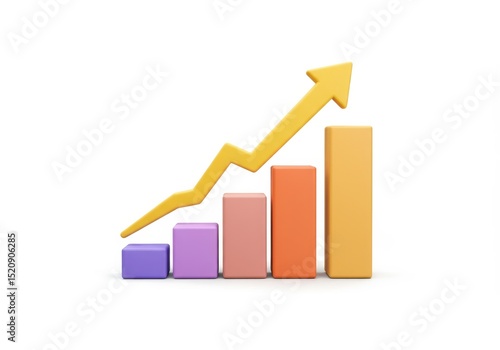 Illustrations of a bar graph with an arrow pointing up, isolated on white background