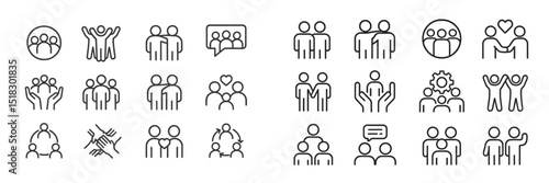 Illustrations of diverse groups engaging in various social interactions and teamwork activities
