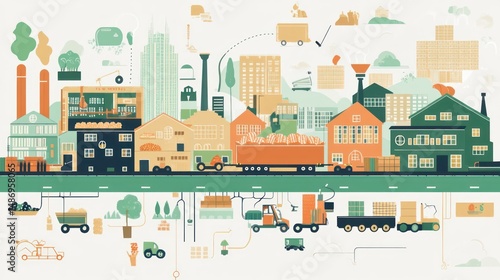 Illustrative Cityscape: A Vibrant Panorama of Urban Industry and Logistics