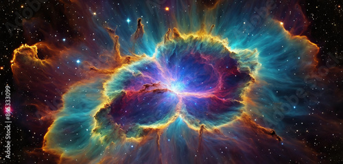 Illustrative depiction of a bright supernova explosion, the end of a star in the universe