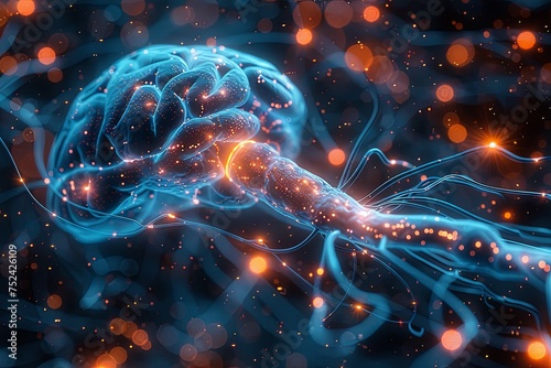 illustrative human brain and nervous system, in the style of light azure and black, pristine geometry, human-canvas integration, net art. Generative AI