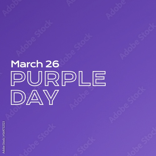 Illustrative image of 26 march and purple day text on purple background, copy space