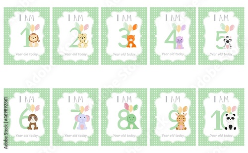 I'm one year old today - Baby Milestone card. Cute design with green background and lion cub